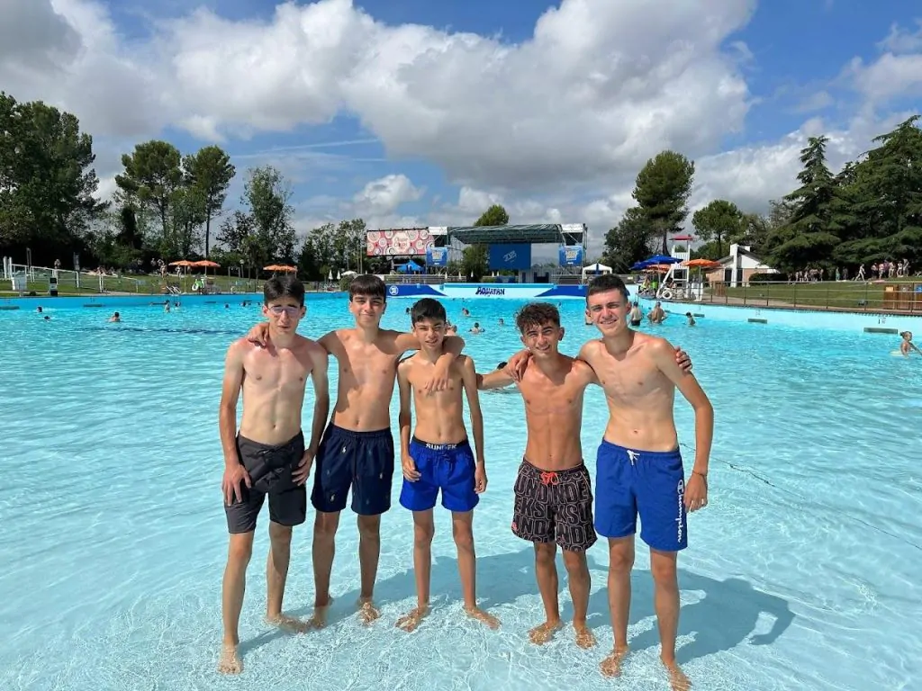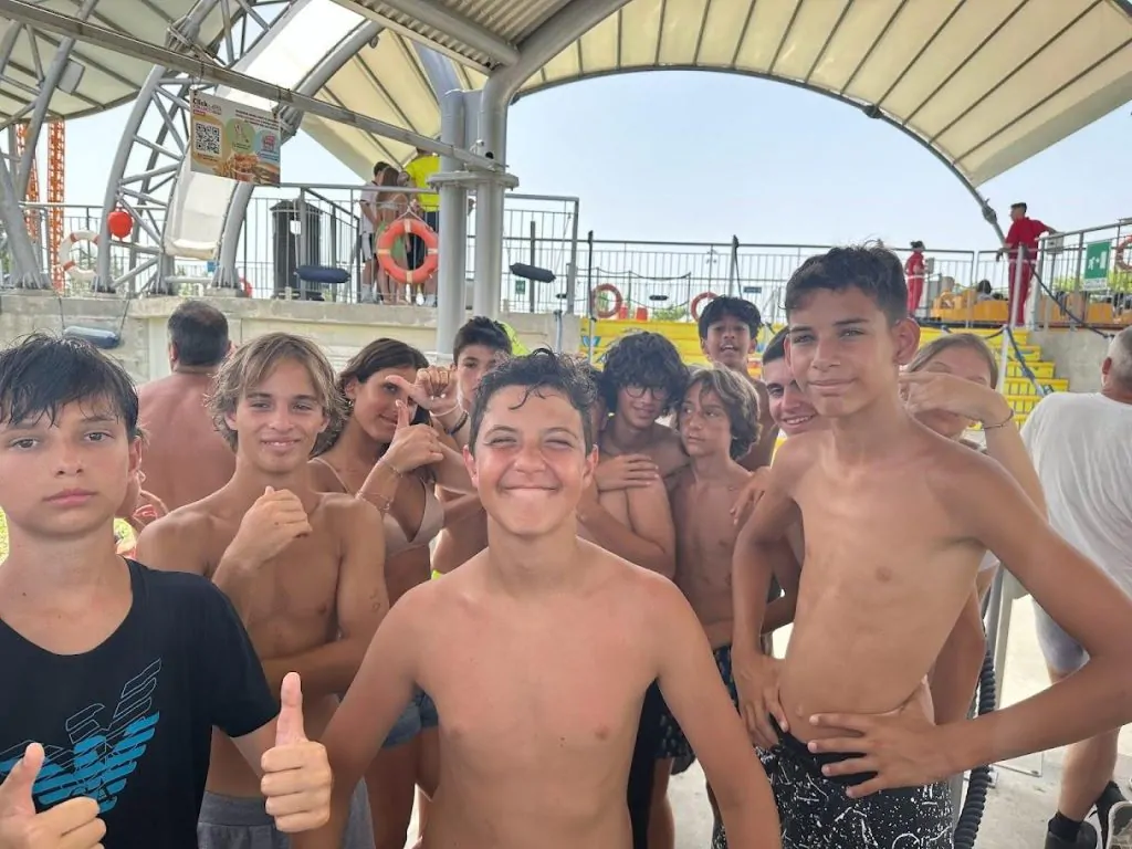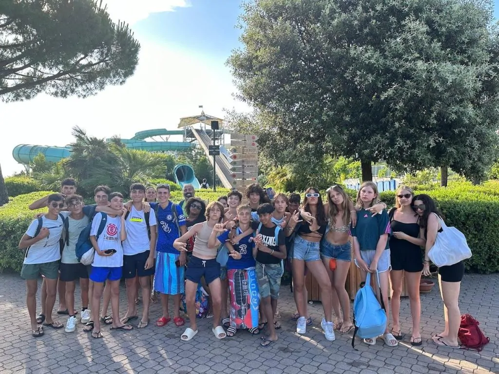 E poteva mai mancare un tuffo di gruppo nella grande piscina del parco acquatico più famoso d’Italia? Ecco un video dei nostri ragazzi: