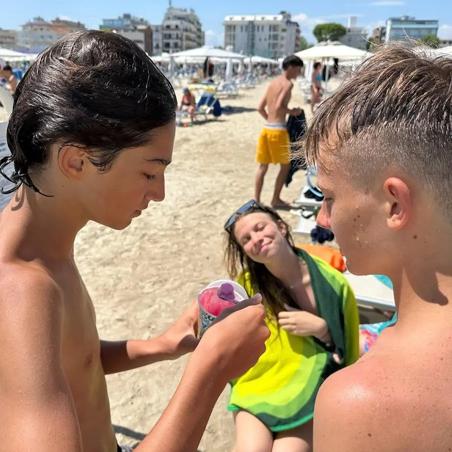 La seconda settimana a Riccione inizia con una bellissima giornata di sole! Tanto anche il caldo, ed ecco alcuni nostri ragazzi ospiti della vacanza all’ombra nell’accogliente stabilimento “Spiaggia 128”… Altri, invece, di rientro dopo un tuffo a mare! Che vacanza!
