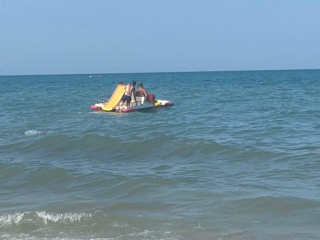 eccoci nuovamente in spiaggia e non poteva mancare il pedalò (rigorosamente con scivolo!) per un divertente giro con gli amici di questa bellissima vacanza a Riccione!